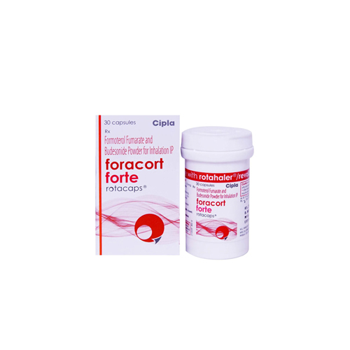 Foracort Forte Rotacaps 12mcg+400mcg is a combination inhalational medicine prescribed for the maintenance treatment of asthma and Chronic Obstructive Pulmonary Disease (COPD). It helps to keep the airways open, making breathing easier by reducing inflammation and relaxing the muscles in the airways.
