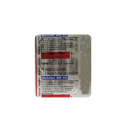 Metolar XR 50mg is a widely trusted, extended-release formulation of Metoprolol Succinate, a cardioselective beta-blocker. It is expertly designed to provide continuous, all-day management of cardiovascular conditions by stabilizing the heart’s rhythm and reducing workload. This once-daily dosage ensures consistent therapeutic levels, promoting better patient compliance and quality of life.