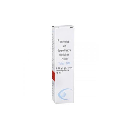 Toba DM Eye Drops is a sterile ophthalmic suspension designed to treat bacterial eye infections accompanied by inflammation. This dual-action formula combines a potent antibiotic with a corticosteroid to provide rapid relief from symptoms such as redness, swelling, itching, and watering of the eyes. It is commonly prescribed for conditions like bacterial conjunctivitis and for post-operative eye care.